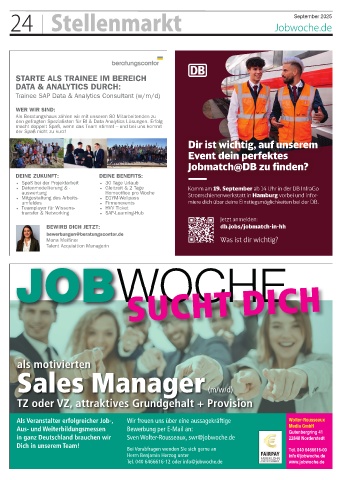 in ganz Deutschland brauchen wir Sven Wolter-Rousseaux, swr@jobwoche.de 22848 Norderstedt